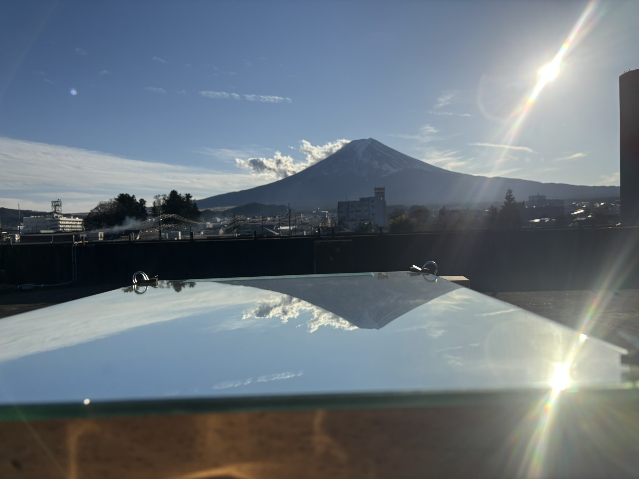 写真は「旧山叶(きゅうやまのう)」という廃工場の屋上からの富士山。鏡が設置されており逆さ富士に見える仕組み!