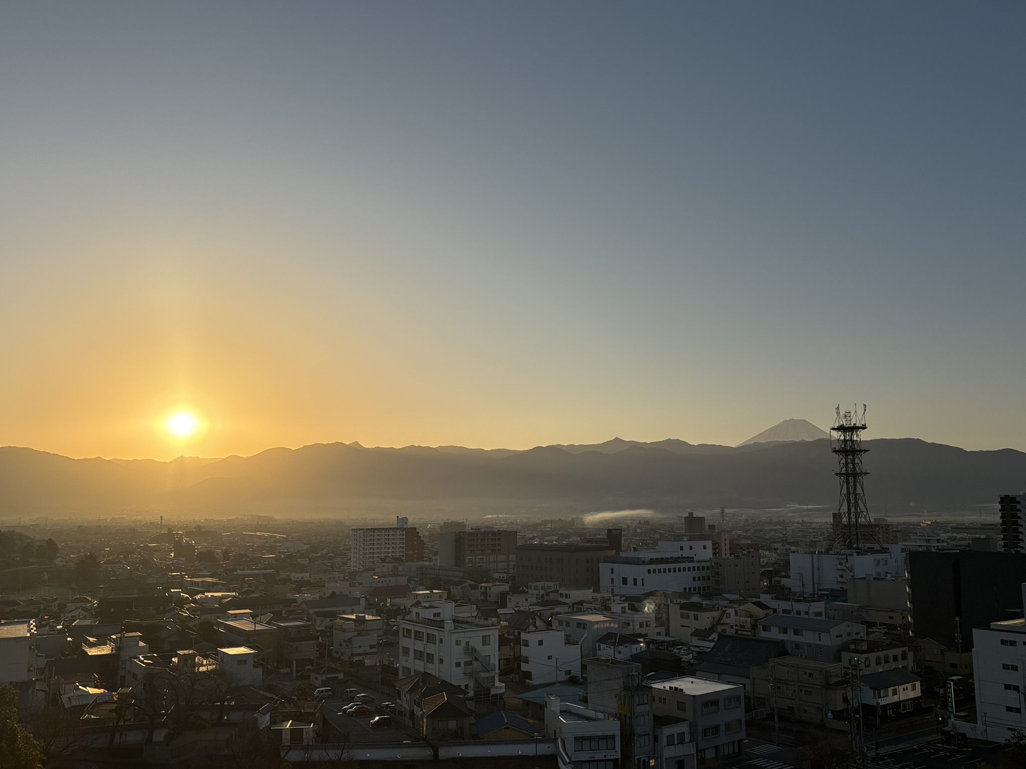 写真は甲府、朝日と富士山です。